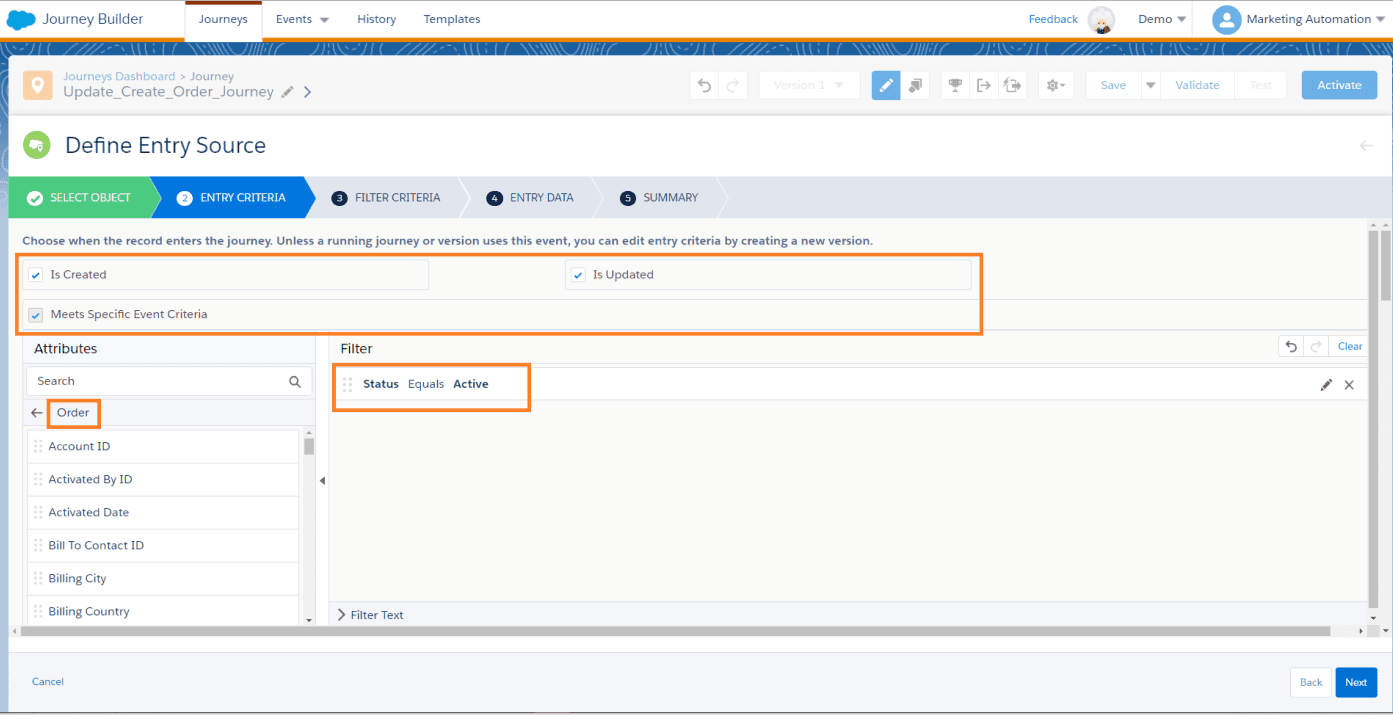 Northern Trail Outfitters uses a Salesforce Data Entry Source in their Journey that injects Salesforce Orders when they are either created or updated with a status of New, Currently Knitting Shipped, and Complete. Their Journey works when orders are created, but they notice that it does not inject customers when their status is updated. What could be causing this?