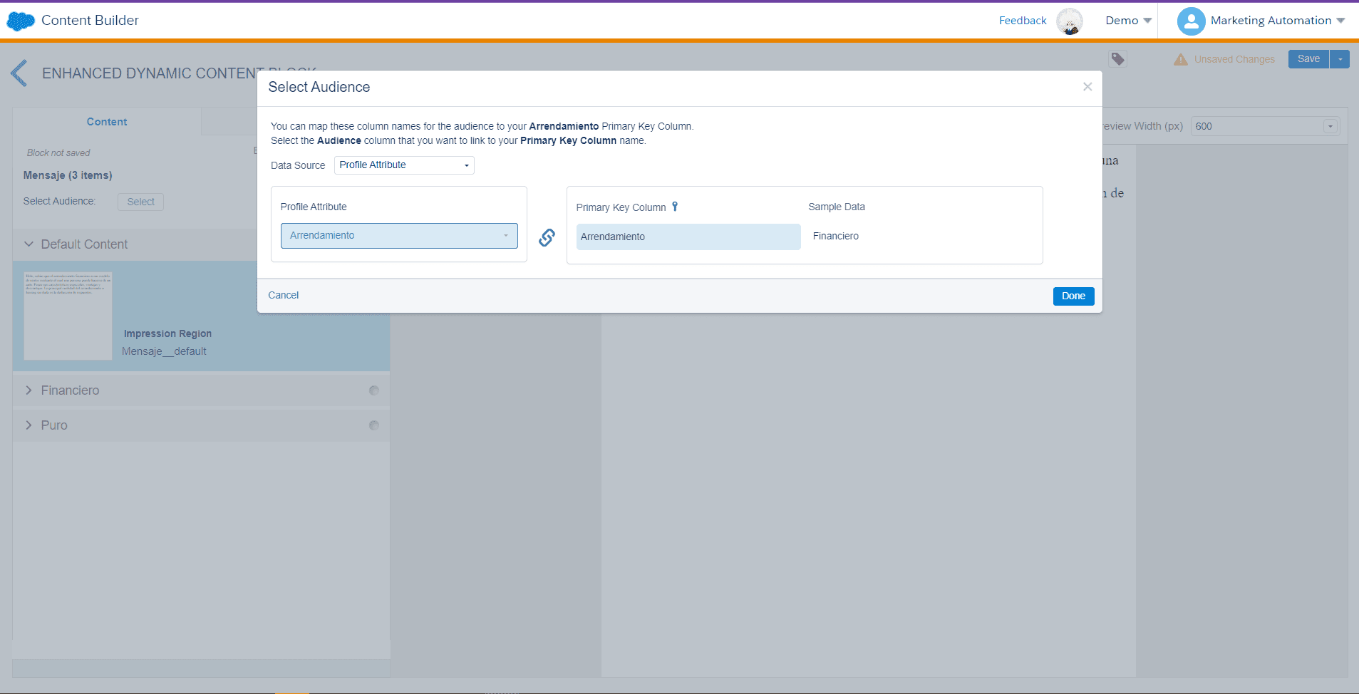 Now, we can add an email field from a sendable Data Extension that is being used in the Contact Model.